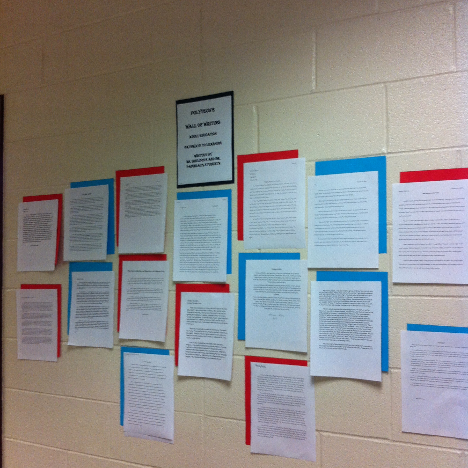 Photos from Polytech’s Wall of Writers, a display of writing by students from Ms. Sheldon’s and Dr. Papineau’s adult education classes.