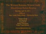 Five members of the Written Remains Writers Guild have been invited to participate in a literary reading at the New Castle County Library in Old New Castle, Delaware.